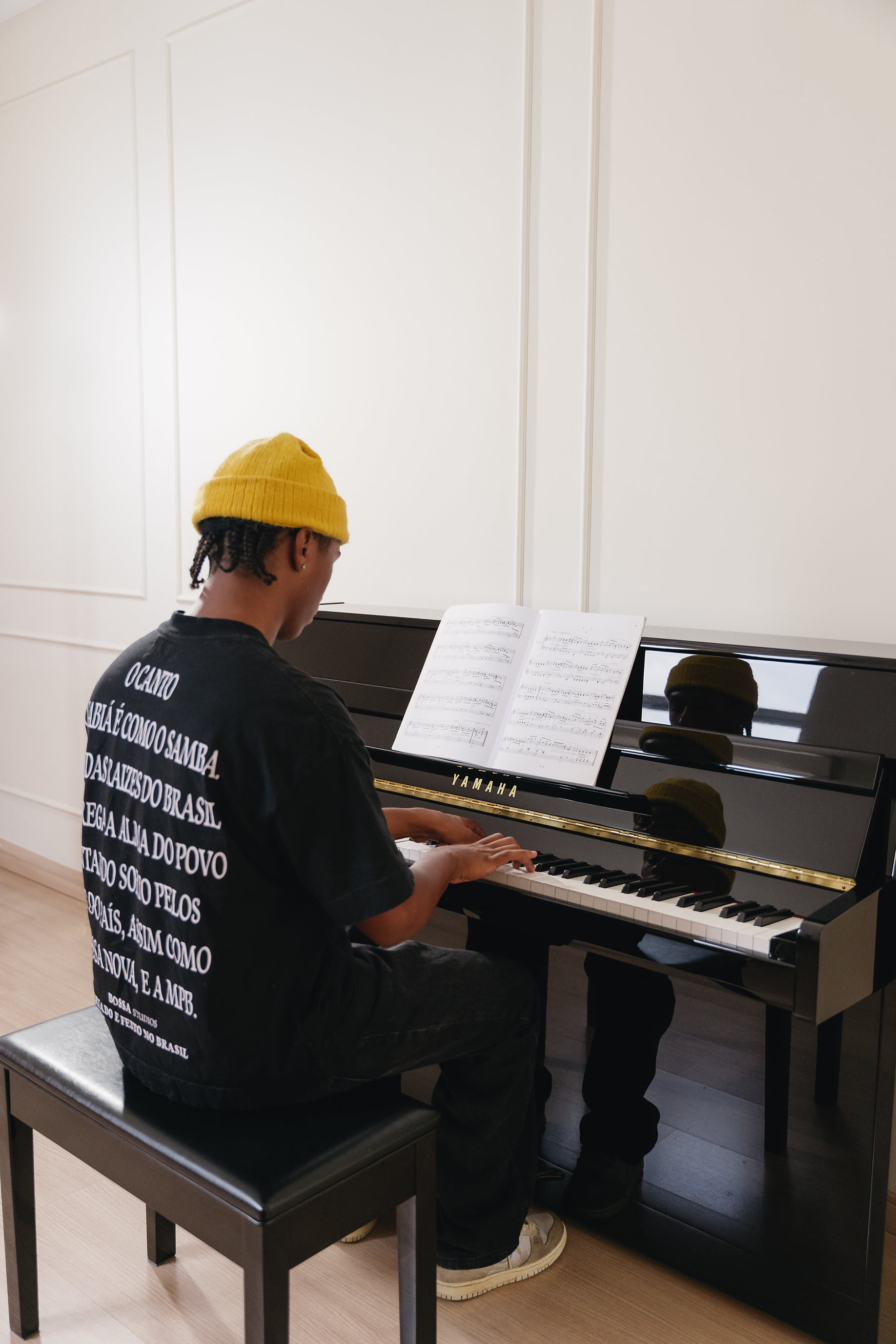 Um ambiente cuidadosamente planejado para inspirar. Piano Yamaha de última geração, acústica ideal e sala clássica que favorece o aprendizado e a vivência musical.